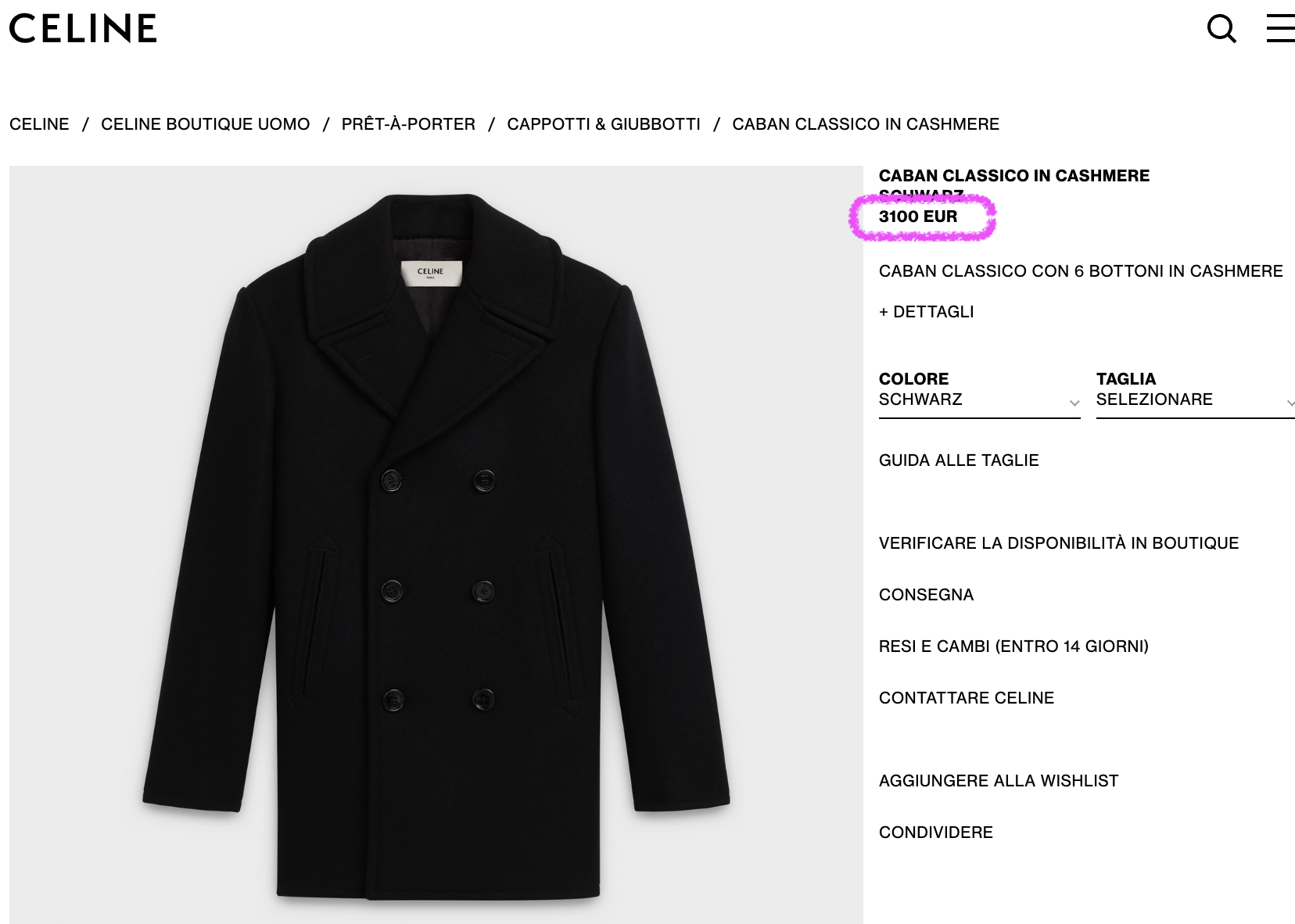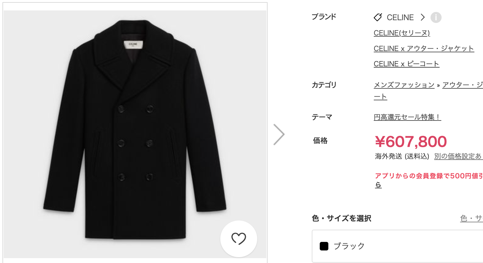 例えばこちらのセリーヌのコートは、
