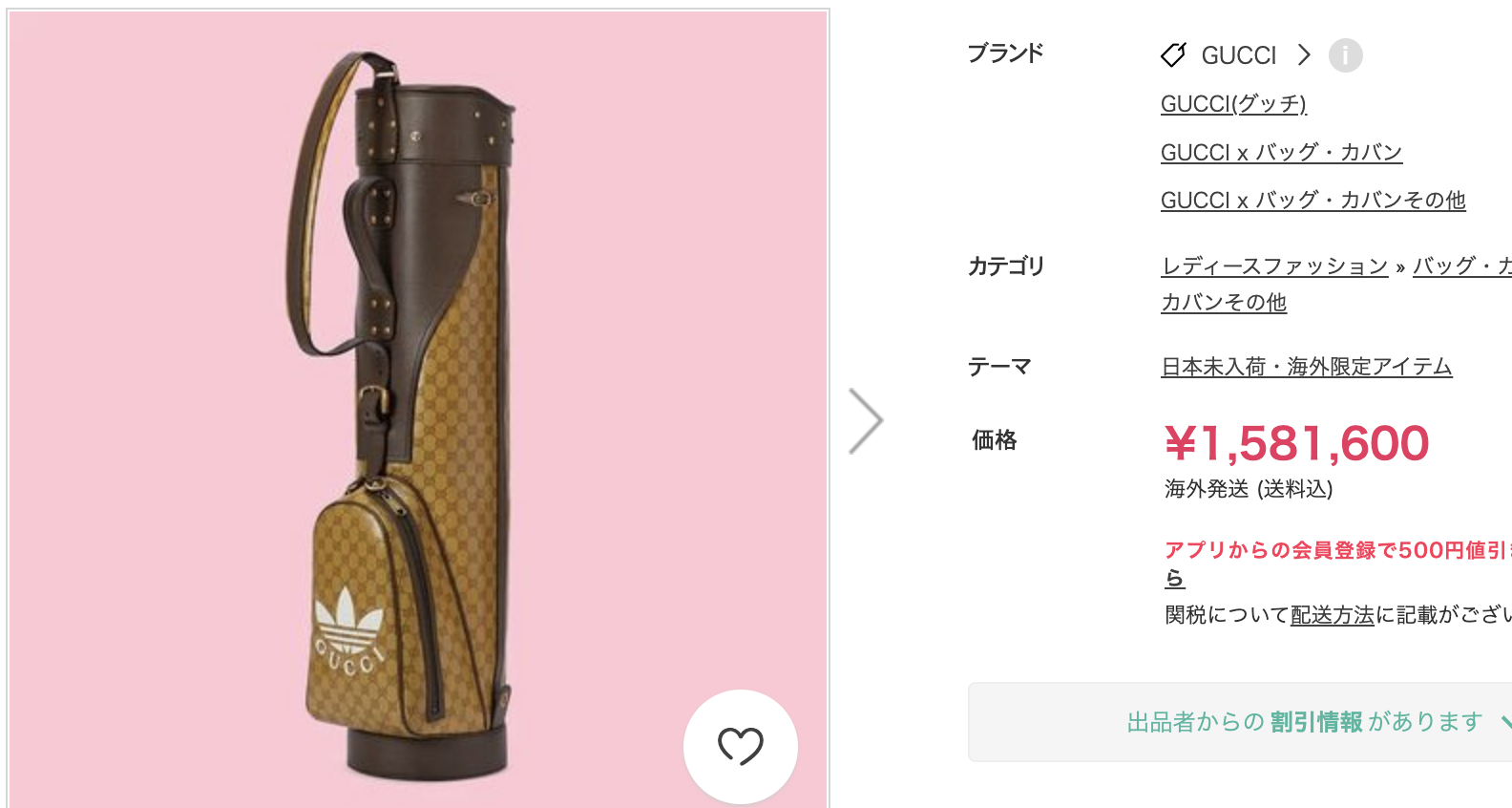 GUCCIのゴルフバッグ。